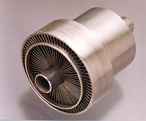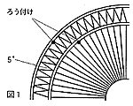 この製品の加工ポイントは、3本のパイプ間のジャバラ部分(内側と外側の2箇所)を、隙間(アソビ)なく、しかも等間隔(5°)にはめ込むところにある。ジャバラ部分がパイプ面と隙間なく密着していないと、ジャバラ部分を固定するためのろう付け(図1参照)を施せないからである。