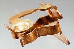 曲げ加工の一番のポイントは"玉ダボ"のセンター出しと、その前面にあるR曲げ、そして玉ダボとの位置合わせだ。 |
