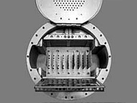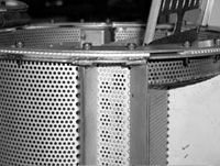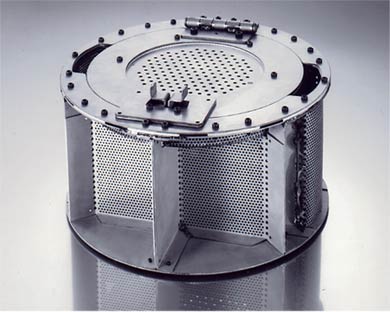 フロンの環境対策を背景にして、水切れのよい遠心分離機能を組み込んだ温水方式の洗浄機に需要が高まっている。 受賞製品はベアリング用の温水式遠心分離洗浄装置のドラムであるが、形状は高さ450mm、直径240mm。