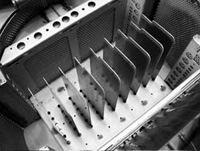(写真5)洗浄篭の部品ホルダー。ホルダーの間に洗浄部品を配置する |