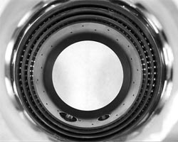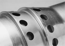 (写真2、3、4) 6つの円筒で構成されている。開口部はヘラ絞り、接合部にはスペーサーをかませ、ろう付けすることにより精度を高めた。