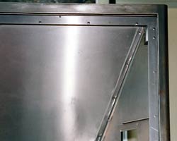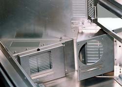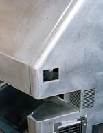 3枚板の溶接(内部部品の一つで、2枚の板を溶接、さらにそれを本体に溶接する)、スクリーン枠は8枚の部材で構成するなど、いくつか複雑な加工が要求されているが、最も苦心をした加工ポイントは、R部の溶接と、溶接後の仕上げにあったという。