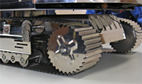 (写真5)治具の工夫・開発によって加工されたキャタピラー。細幅材を等ピッチで裏表正逆にして連続曲げした。