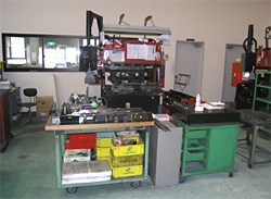 日南田課長の板金工房。金型、治具の整理整頓が行き届いている。
