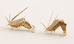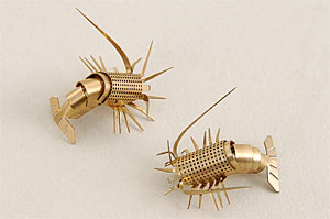 また製品は部品6点で構成されているが、甲羅と3つに分割された腹部・尻尾の各部をダボで接合し、動くように工夫した点も製品のユニークさを演出し、評価のポイントになった。さらに甲羅にはφ0.2mmの穴が80個あけられており、これもデザイン面で評価を上げた。ちなみに材質はリン青銅、板厚は0.2mm、大きさは全長で最大18mm、甲羅は外径でφ5mmである。