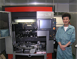 高精度電子部品対応機MERC Type Mで加工したのが受賞製品である。福田計器では2004(平成16)年3月、新たな精密電子部品の受注を目指して同機を導入。機械の特徴を活かしたPRできるものをつくってみようと取り組んだ製品がみごと金賞の栄誉に輝いた。