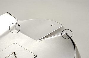 受賞製品はもともと鉄製だったものをステンレス製に、さらに異なるR形状の多用と、より難易度の高い製品になっています。上面と側面のRに加えて、これを接合する面にもRをつけ、3次元のR形状としています。