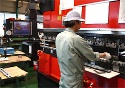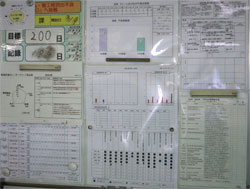 不況の影響で仕事量が減少する中、同社が現在取り組んでいるのが“多能工の育成”。最初にそれぞれの社員から現在の職場以外に取り組みたい職種の希望を聞き、それを受けて課題を与え、挑戦してもらう。各職場には「目標管理板」を設置。「製造2課 板金係」のような各係の評価表およびレーダーチャート表、「各個人の教育計画表」、「各個人の自己評価表」を貼り出している。 「以前から多能工の育成には取り組みたいと考えていましたが、仕事が混んでいる間は、なかなか手を付けることができませんでした。今回の不況は、多能工育成に着手するまたとないチャンスです。仕事量が回復した時に少ない人数でも対応できるように今から準備しておきたい。作業者のノウハウもデータと同じで、何ものにも代えられません。育て、蓄積し、伝えていかなければ」と語る今井社長。カリスマ経営者の後を継ぎ、ITを最大限に活用した知的な経営手腕で不況に立ち向かう。 |