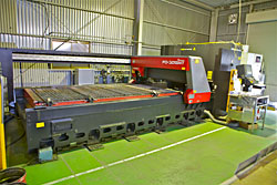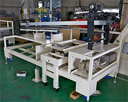 「別会社ではありますが、メインのお客さまである自動はんだ付け装置メーカーにとって、当社は製造部門にあたり ます。最終製品の製造を丸ごと一式で請け負っていますから、板金部材の加工だけでなく、機械加工品や電装品を調 達して組立・配線や出荷検査まで社内で行い、エンドユーザーへ直接出荷しています」。 リピート率は多く見積っても30%に満たない。新規オーダー品が多いため、機種あたりのロットは1〜2台、パー ツもほとんどが単品となっている。こうした多品種少量生産に対応するため、同社は2004年に2次元CAD/CAMAP100、レーザマシンFO-3015NT、ベンディングマシンFBDV-1253NT を同時に導入。事務所とブランク・曲げ工程のデジタル化・ネットワーク化を実現した。 その後も、2006年に3次元ソリッド板金CADSheetWorks、2007年にパンチングマシンAC-255NT とベンディングマシンHDS-5020NT、2009年に生産管理システムWILL 受注・出荷モジュール+M と画像モジュール+S、 見積りモジュール+LD、2010年に曲げ加工データ作成全自動CAM Dr.ABE_Bend と、ネットワーク対応型の設備を 次々と導入。6年という短期間のうちに全工程でネットワーク対応型の設備を網羅するまでになった。 |