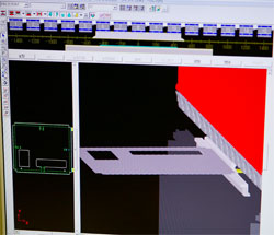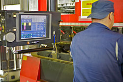 EDIには受注情報と併せて2次元のCAD データが登録される。同社は得意先と同じCADソフトを設備しており、そのソフトでTIFF形式の画像データに変換して、WILL画像モジュール+Sに登録する。 「受注情報と図面の画像データとがリンクしているため、WILL の受注台帳から図面を呼び出すことができるように なりました。WILLが発行する生産指示書の裏面には、画像モジュール+S から呼び出した図面が印刷されます。いちいち図面を探す手間が減り、格段に楽になりました」。 得意先から受け取る図面は、基本的に組み図で、パーツ単位の図面はないため、同社がバラシから行う必要がある。 そこは組立・配線まで行うアセンブリーメーカーならなおさら、組立性を検証する必要があるため、SheetWorksを利用した3次元モデルの運用を推進している。 バラシ後の展開図データはAP100 に受け渡す。AP100がインストールされているマシンはミニSDDサーバーの機 能を持たせ、加工データはここに集約される。昨年12月には曲げ加工データ作成全自動CAM Dr.ABE_Bendを導入し、ミニSDDサーバーに保存されている曲げ属性付きの展開図データを呼び出し、曲げ加工データを自動生成。 製造現場では、AP100で作成したCAM データとDr.ABE_Bendが作成した曲げ加工データを呼び出して、加工を行う。 |
