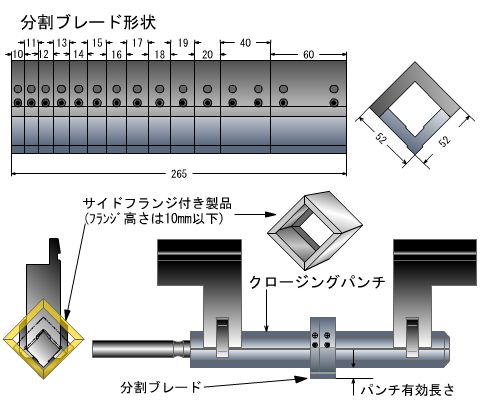 - 分割ブレードを装着することによりサイドフランジ付きの深曲げおよびクロージング曲げが可能