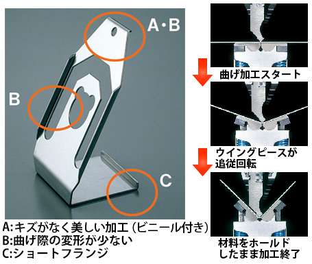 一つの型で加工板厚範囲が広く、ダイ交換工数の削減が図れます。
