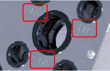 段取りパネルの番号 丸いタレットを長方形に表現し、58ステーション仕様のタレットを再現しています。 番号は、タレットと同じに並べられていますので、金型交換段取り作業に役立ちます。 ※ 挿入部分:樹脂製 |