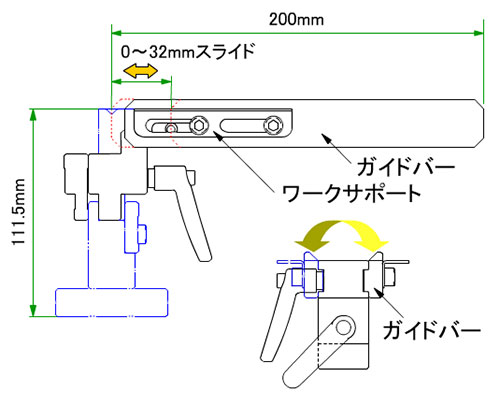 | ガイドバーの前後スライド調整範囲 | 0~32mm |