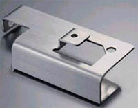下の様な製品を曲げる場合、「標準金型で曲げられるか?」とまず考えられると思います。 残念ながら製品が金型に干渉して標準金型で曲げることはできません。