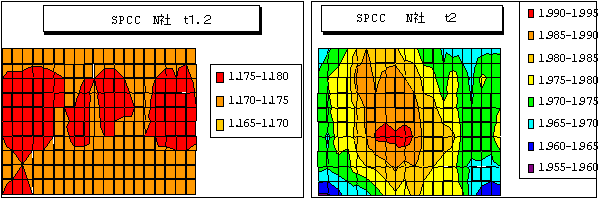 下のグラフは、N社製SPCC(一般材)t1.2、2.0mmの定尺シート内の板厚分布です。 調査範囲内では、定尺シート内での板厚のバラツキ幅は±1.0%でした。 |