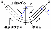 中立面は伸びも縮みもしないため、曲げ加工製品の展開長を計算するのに用いられます。 |