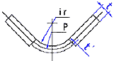 | V字型に加工し終わった場合を考えてみると、内側は圧縮ひずみを生じ、外側は引張りひずみを生じています。 そのひずみの大きさは、板の表面部が最も大きくて、順次板厚の内部に向かって小さくなっていき、中心部近くにおいて圧縮ひずみも引張りひずみもない架空の面が想像されます。 このような面を中立面(中立線)と称しX −X 線で表されます。 この中立面の位置は、曲げ半径ir が板厚t の5 倍以上あるうちは板厚の中央部にありますが、曲げ半径がそれより小さくなると板厚が減じてt がt´となり中立面は内側へよってきます。 中立面の半径をPとすれば一般に下記のようになります。 |