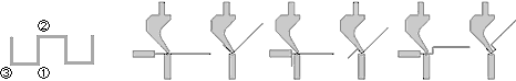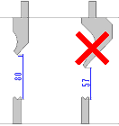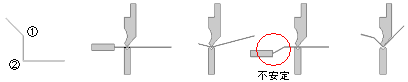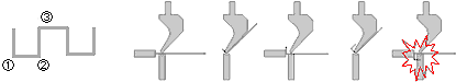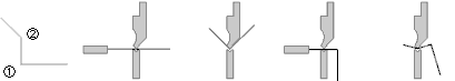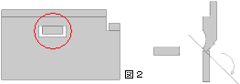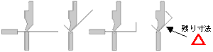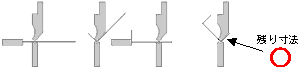 図2のように切り起こしの向きが逆の場合は、曲げ時に材料の跳ね上がりが逆になりますが、この場合はB部の寸法調整をするとき に注意が必要です。B部の立ち上がり寸法を大きくしたいときはL値をマイナスさせ、寸法を小さくしたいときはL値をプラスさせ ます。