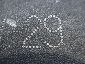 ショット材にレーザーケガキを行うと目立ちにくいので、はっきり認識できるケガキを行いたい