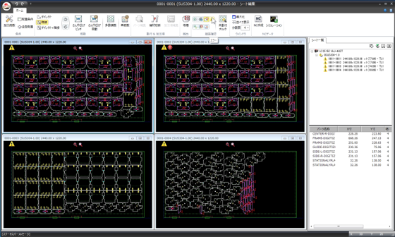 □展開図や保存した割付データをもとに、歩留まりよく板取りを行うネス